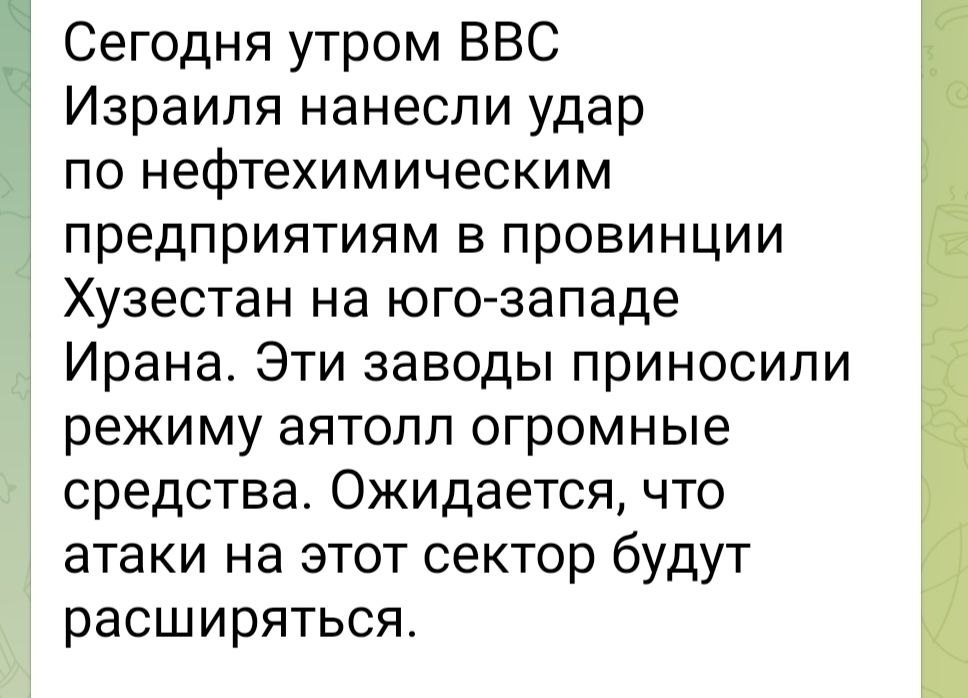 Перед вами сообщение и трактовка событий из израильского тг-канала