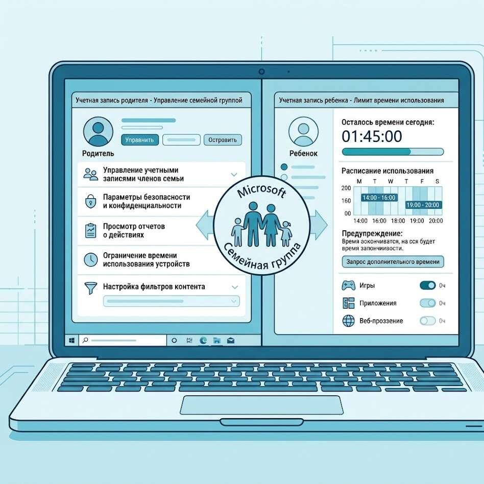 Хотите ограничить время за компьютером, заблокировать взрослые сайты и контролировать покупки в Microsoft Store? Встроенный инструмент "Семейная безопасность Microsoft" (Microsoft Family Safety) справляется с этими задачами бесплатно, без установки сторонних программ. Вся настройка занимает не больше 10 минут. Родительский контроль работает только через учётные записи Microsoft. Локальные аккаунты не поддерживают функции семейной безопасности. Что нужно: Шаг 1. Создайте семейный аккаунт и добавьте ребёнка Откройте Параметры (Win + I) → "Учётные записи" → "Семья и другие пользователи". В разделе "Ваша семья" нажмите "Добавить члена семьи" → "Добавить учётную запись ребёнка". Введите его email или создайте новый Microsoft-аккаунт. После создания обязательно подтвердите родительский контроль. Шаг 2. Настройте ограничения через сайт или приложение Всё управление происходит через account.microsoft.com/family или приложение Microsoft Family Safety на телефоне. Здесь можно настроить: Шаг 3.