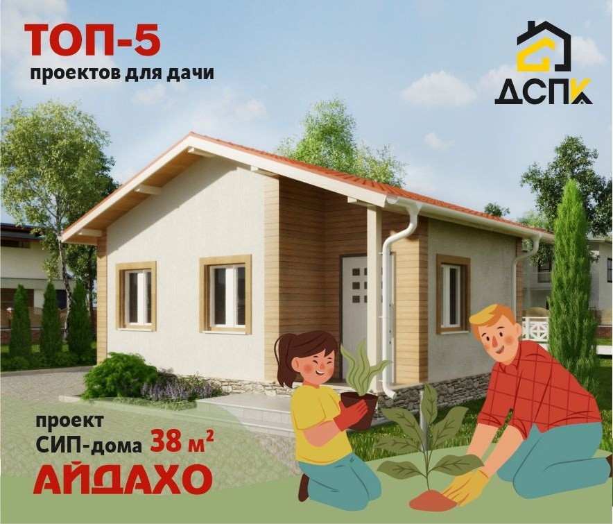 Весна!!! Дождались!🌷 И в этот волшебный период все мы разделились на два лагеря – тех, у кого есть дача, и тех, кто только о ней мечтает. Первые уже составляют список покупок к началу дачного сезона, а вот вторые, возможно, вздыхают: «Эх, опять не успели построить домик! Придётся снова «кормить» владельцев турбаз…» Стоп! Никаких сожалений! Компания «ДСПК» построит современный, комфортный, недорогой загородный дом из СИП-панелей за один месяц! И уже этой весной вы из мечтателя превратитесь в настоящего дачника!🌻 Сегодня мы представляем проект СИП-дома АЙДАХО, который идеально подойдёт для дачи. Всего 38 м2, но в нём есть всё для комфортного отдыха небольшой семьи. ✅Проект АЙДАХО 📍Общая площадь: 38 м2 📍Размеры: 6,88 x 5,63 м 📍Этажей: 1 Высота: 2,5м 📍Срок строительства: От 21 дня Проект Айдахо – это небольшой уютный домик в скандинавском стиле. Простые формы позволяют легко выбрать отделку на свой вкус и сделать типовой проект индивидуальным. На первом этаже большую часть площади за