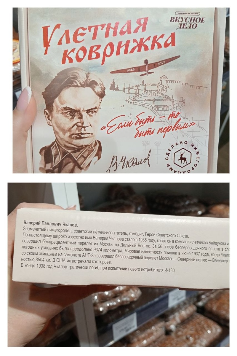 Улётная коврижка от комбрига Валерия Чкалова, пряник с которого смотрит создатель экранопланов Ростислав Алексеев. На упаковке даже имеется краткая автобиографическая справка☝️ Цитаты земляков в глазури .. А ещё счастливый билетик, который даже жалко есть... Как вам идея? 🚩За покупками в "Русский пряник"/ Б. Покровская,10 #сувенирнн
