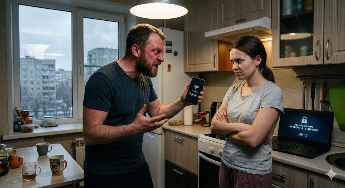 Я дождалась, когда он уйдёт на работу в пятницу. Денис работал в крупном IT-холдинге, но на позиции менеджера по продажам. Его рабочий процесс полностью зависел от связи: звонки, CRM-система, бесконечные чаты в мессенджерах. Дома у нас стоял мощный роутер и серверная стойка в кладовке — моё детище. Весь умный дом, весь доступ в интернет и даже облачное хранилище его рабочих архивов завязано на одну учётную запись. На мою.