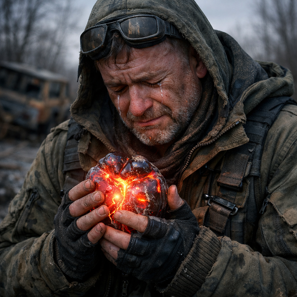 В тот же миг пещера озарилась ярким, пульсирующим светом алого оттенка. Забыв о горе и печали, они уставились на артефакт. Он будто состоял из переплетенных нитей света, образующих сложную, причудливую форму. И действительно, он напоминал человеческое сердце – не идеальное, истерзанное, с уродливыми шрамами, но излучающее некую странную, завораживающую силу. Он не просто светился, он пульсировал, словно живой орган. Его свет окрашивал бледные лица сталкеров в багровые тона, отбрасывая причудливые тени на каменные стены.