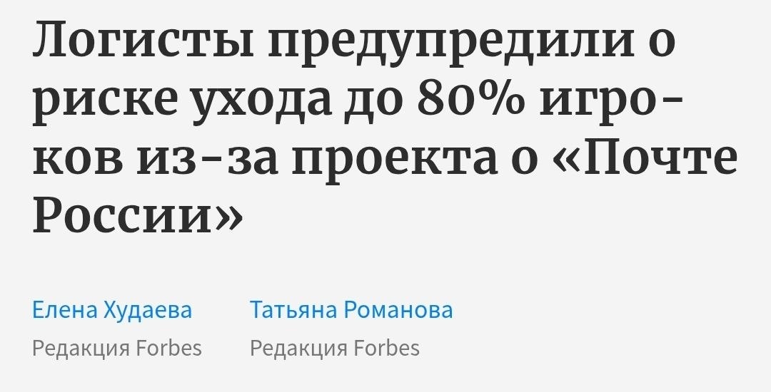 Логисты предупредили о риске ухода до 80% игроков из-за проекта о «Почте России