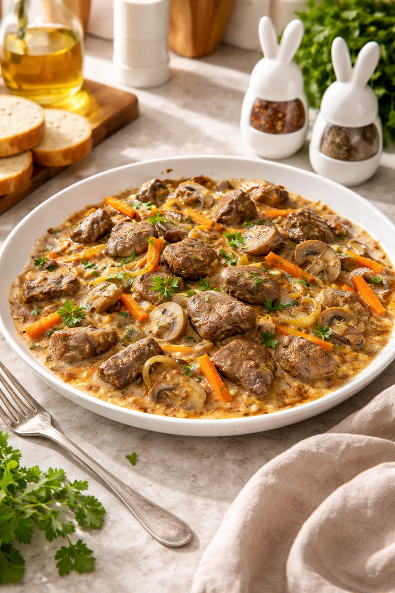 В сочетании со сладковатым луком, мягкой морковью и ароматными шампиньонами получается полноценное, сытное блюдо, которое идеально подойдёт и для семейного ужина, и для уютного обеда.
