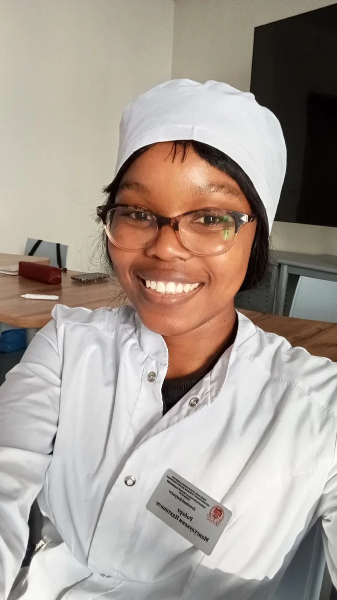 История, за которой — труд, настойчивость и настоящая любовь к науке Она приехала в Уфу, чтобы стать врачом. Прошла путь от первого знакомства с русским языком до создания проекта, который получил федеральное признание и грант в миллион рублей. Знакомьтесь: Роберт Мангулукени Ндатйооле — студентка лечебного факультета БГМУ (группа 213Б), чья история доказывает: наука не знает границ. Путь в профессию: с подготовительного факультета — на стартап Как и многие иностранные студенты, Роберт начала свое обучение с **подготовительного факультета БГМУ**. Это был важный этап: не только адаптация к новой стране и культуре, но и интенсивное изучение русского языка, биологии, химии. «Это был вызов, но именно там я поняла, что хочу остаться здесь и заниматься настоящей медициной», — делится Роберт Успешно преодолев этот барьер, она поступила на лечебный факультет и с первых курсов зарекомендовала себя как невероятно целеустремленный студент. Преподаватели отмечают ее системный подход к учебе, уме