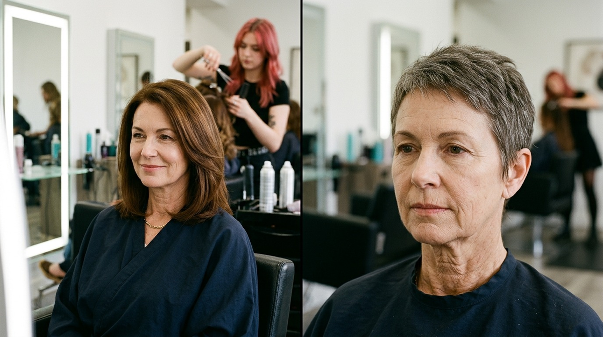 Антонина сидела в кресле салона «Эдем», ощущая странную смесь покорности и протеста. Перед ней в огромном зеркале отражалась женщина пятидесяти трёх лет с густыми, каштановыми волосами, которые мягко лежали на плечах. В руках парикмахера Лены уже пощёлкивали ножницы. Лена, бойкая девушка лет двадцати пяти с ярко-розовыми прядями, смерила Антонину профессиональным взглядом.