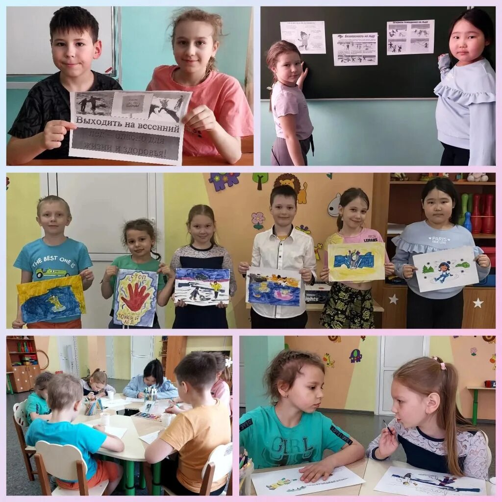 Настало время пробуждения природы и первых ярких лучей. Но за этим теплом скрывается серьёзная опасность. В одной из наших групп дневного пребывания прошло важное занятие «Осторожно — тонкий лёд!». Пока на улице тает снег, мы учимся распознавать коварные ловушки весенних водоёмов. Ребята активно обсуждали теорию и моделировали реальные ситуации: 🔹 Весенний лёд не трещит, предупреждая об опасности, а тихо рассыпается под ногами. Если он потемнел или стал рыхлым, то выход на него строго запрещён. 🔹 Главное правило — никакой паники! Если лёд не выдержал, нужно широко раскинуть руки, «распластаться» по поверхности и медленно отползать к берегу по своим же следам. 🔹 Помощь другу. Мы разобрали правило «длинной руки»: спасать товарища можно только с безопасного расстояния, используя подручные средства, например, шарф, ветку или куртку. Теория закрепилась в творчестве. Свои знания и впечатления ребята перенесли на бумагу. В их рисунках отражены важные напоминания о том, как сохранить жизнь.
