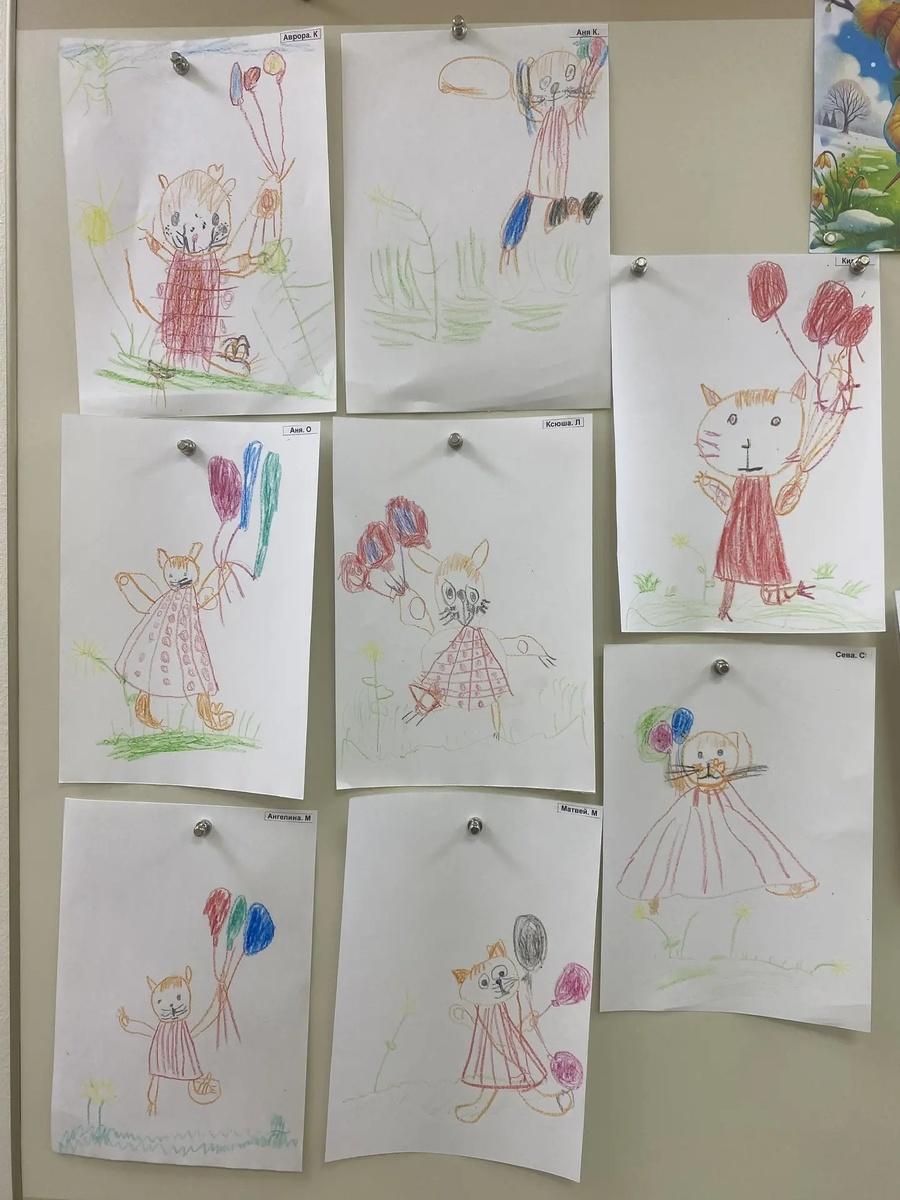 Рисование сюжетное «Кошка с воздушными шариками»