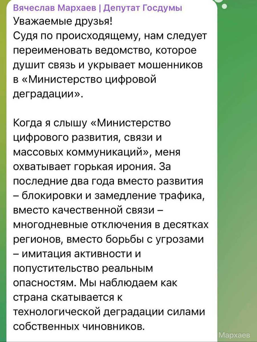 Π°Π΅Π² Π²ΡΡΡΡΠΏΠΈΠ» Ρ ΡΠ΅Π·ΠΊΠΎΠΉ ΠΊΡΠΈΡΠΈΠΊΠΎΠΉ Π² Π°Π΄ΡΠ΅Ρ ΠΠΈΠ½ΡΠΈΡΡΡ, ΠΏΡΠ΅Π΄Π»ΠΎΠΆΠΈΠ² ΠΏΠ΅ΡΠ΅ΠΈΠΌΠ΅Π½ΠΎΠ²Π°ΡΡ Π²Π΅Π΄ΠΎΠΌΡΡΠ²ΠΎ Π² Β«ΠΠΈΠ½ΠΈΡΡΠ΅ΡΡΡΠ²ΠΎ ΡΠΈΡΡΠΎΠ²ΠΎΠΉ Π΄Π΅Π³ΡΠ°Π΄Π°ΡΠΈΠΈΒ». ΠΠΎΠ²ΠΎΠ΄ΠΎΠΌ Π΄Π»Ρ ΡΠ°ΠΊΠΎΠ³ΠΎ Π·Π°ΡΠ²Π»Π΅Π½ΠΈΡ ΡΡΠ°Π»ΠΈ ΡΠ΅Π³ΡΠ»ΡΡΠ½ΡΠ΅ Π±Π»ΠΎΠΊΠΈΡΠΎΠ²ΠΊΠΈ ΠΈ ΠΈΡΠΊΡΡΡΡΠ²Π΅Π½Π½ΠΎΠ΅ Π·Π°ΠΌΠ΅Π΄Π»Π΅Π½ΠΈΠ΅ ΠΈΠ½ΡΠ΅ΡΠ½Π΅Ρ-ΡΡΠ°ΡΠΈΠΊΠ°. ΠΠΎ ΠΌΠ½Π΅Π½ΠΈΡ ΠΏΠΎΠ»ΠΈΡΠΈΠΊΠ°, Π²ΠΌΠ΅ΡΡΠΎ ΡΠΎΠ³ΠΎ ΡΡΠΎΠ±Ρ Β«Π·Π°Π½ΠΈΠΌΠ°ΡΡΡΡ ΠΏΠΎΠΊΠ°Π·ΡΡ