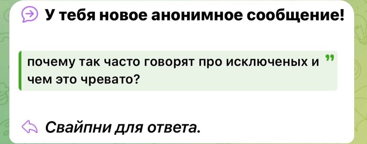 Почему исключённых так важно принять в Родовую систему? По закону замещения, если кого-то исключают из Родовой системы, он снова «возвращается» в систему через подрастающее поколение. Например, если отца алкоголика исключили из Родовой системы, сын (или внук) может повторить его судьбу, даже если он не знает своего биологического отца и его истории. Кого чаще всего исключают из Рода: ▫️Заключенных ▫️Людей с низкой социальной ответственностью ▫️Алкоголиков, наркоманов ▫️Солдат, пропавших без вести ▫️Сумасшедших ▫️Абортированных, умерших во младенчестве и отданных на усыновление детей ▫️Потерянных/украденных ▫️И т.д. ✔️Задать свой анонимный вопрос можно по ссылке: t.me/anonaskbot?start=x6va995h8eotq9c 👉 Мой канал в Максе здесь: жми, на всякий случай 😉