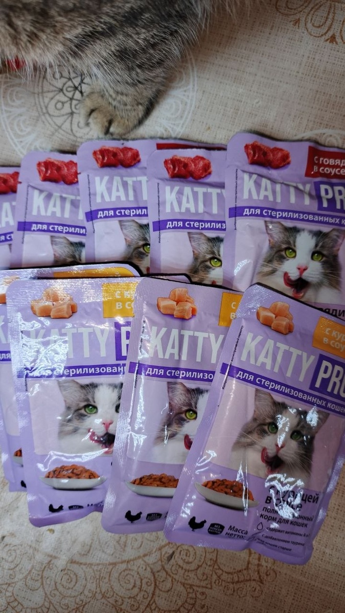 От Натальи К гостинцы им же 10 пакетиков влажного корма (одного утилизировала до записи 🤭)