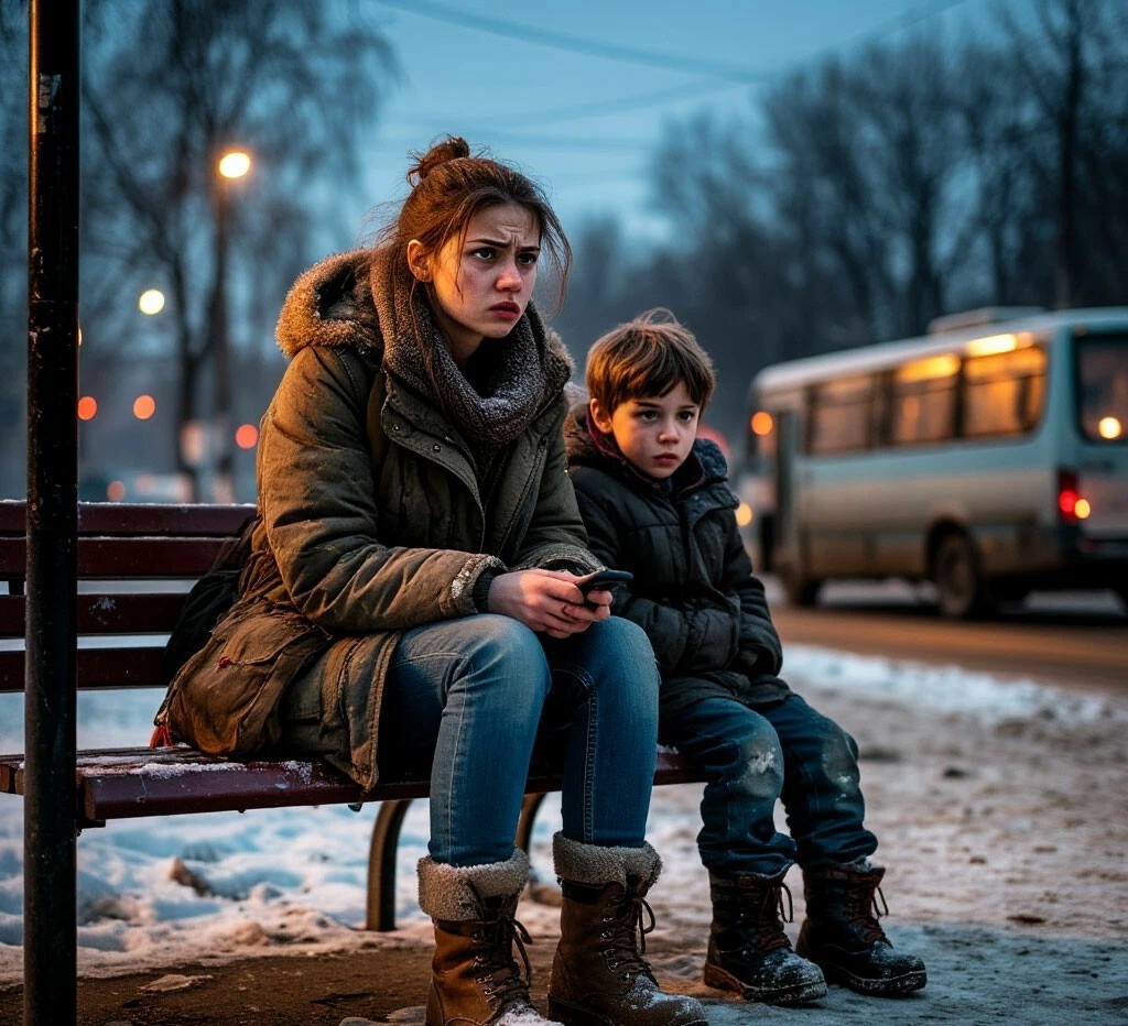 Морозный ноябрьский вечер. Анна стояла на автобусной остановке, прижимая к себе младшего сына, пятилетнего Мишу. Старший, восьмилетний Дима, сидел на скамейке и молча смотрел на проезжающие машины. Они ждали автобус уже сорок минут. Денег на такси не было, как не было и нормальной зимней одежды у самой Анны – куртка была куплена три года назад на распродаже, сапоги протекали.