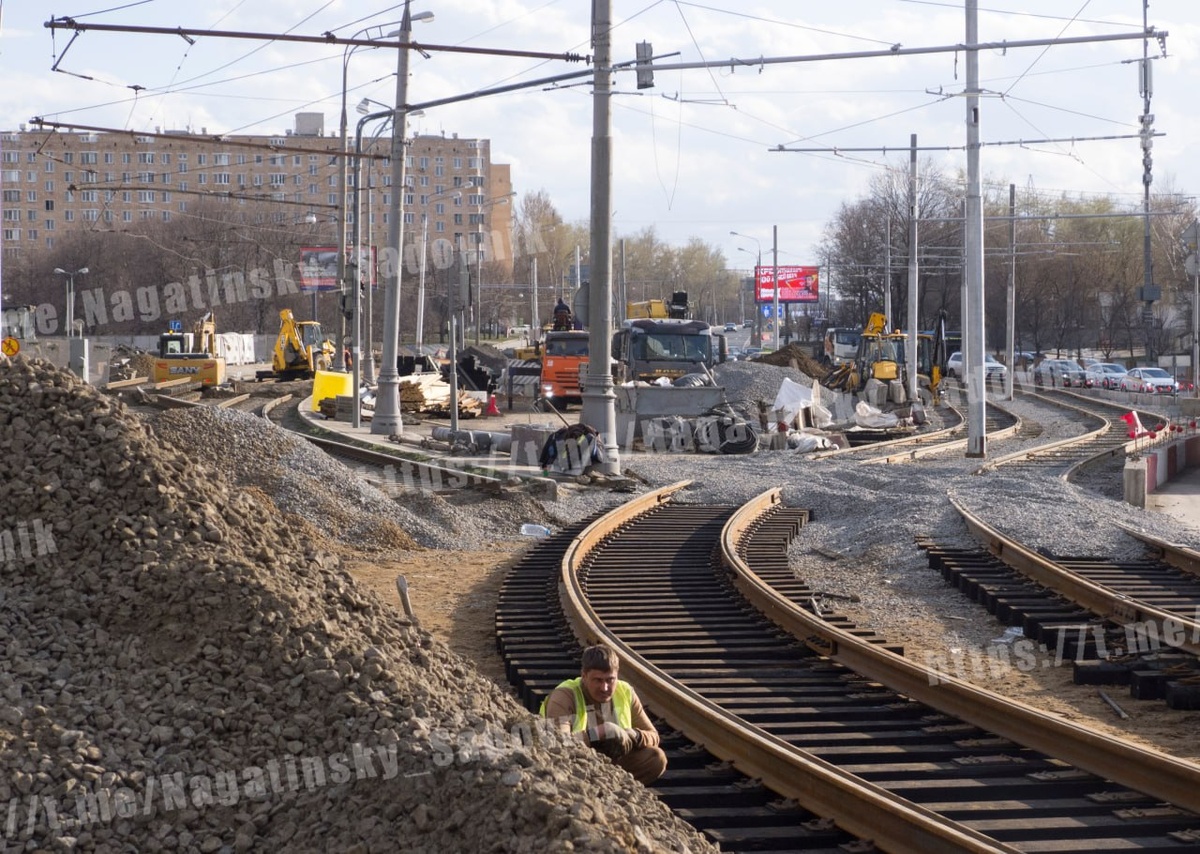 Перекладка трамвайных путей над Каширским тоннелем. Вид сбоку.