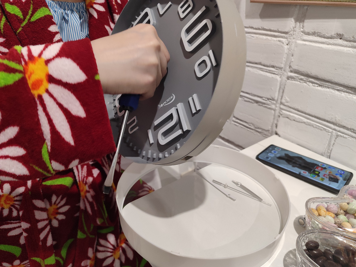 Ножницами вместо отсутствующих пассатижей открутила шайбочку, вынула часовой механизм, чего-то там поколдовала и вуаля!) Стрелочка-то пошла!!!