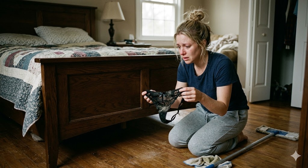 Закончив с кухней и гостиной, Елена перешла в спальню. Включив робот-пылесос, она решила, что сегодня нужно провести генеральную уборку под большой двуспальной кроватью из темного дуба — их гордостью, купленной на первую годовщину свадьбы. Опустившись на колени, она вооружилась шваброй с длинной ручкой и полезла в самый дальний угол, куда робот обычно не добирался.