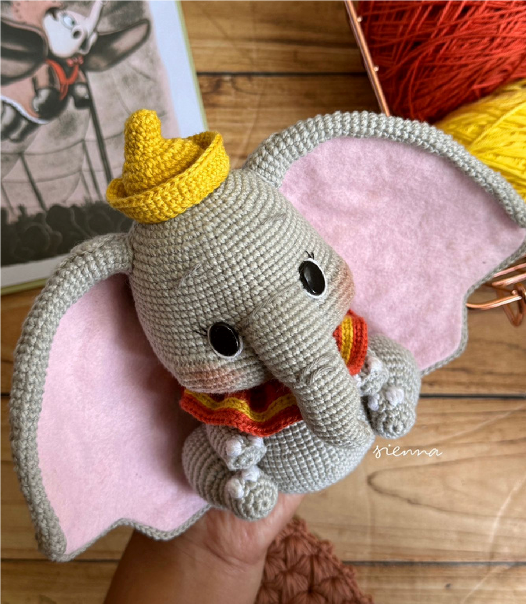 ХОБОТ ТОЖЕ НАБИВАЕТСЯ. ЕСЛИ ПО КАКОЙ-ТО ПРИЧИНЕ ХОБОТ ПРИПОДНИМАЕТСЯ, СДЕЛАЙТЕ НЕСКОЛЬКО СТЕЖКОВ СНИЗУ И ПРИКРЕПИТЕ ЕГО К ГОЛОВЕ.