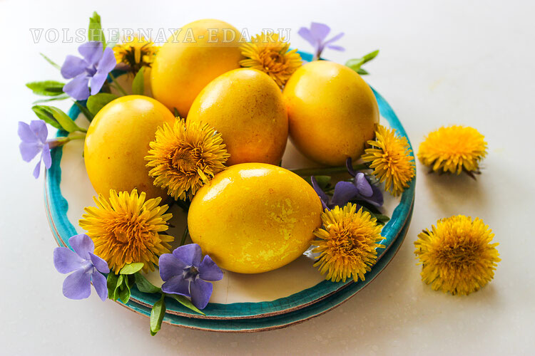 Покраска яиц куркумой — один из самых простых способов подготовки ярко-желтых крашенок к пасхальному столу. Рассказываем и показываем, как правильно красить яйца в куркуме, чтобы они порадовали своим оптимистичным цветом. Куркуму много веков используют как природный пищевой краситель. Порошок обладает сильной пигментацией, что будет как нельзя кстати при покраске яиц. Чтобы окрасилась только скорлупа, но не руки, обязательно надевайте перчатки. Кастрюлю для варки яиц советуем взять металлическую, ее будет проще потом отмыть (в эмалированной посуде окрасятся стенки). Важно! Для окрашивания в желтый цвет берите белые яйца, а не коричневые. Если они у вас хранятся в холодильнике, то достаньте их за 2-3 часа до варки, пусть согреются при комнатной температуре. Общее время: 30 минут | Время приготовления: 10 минут