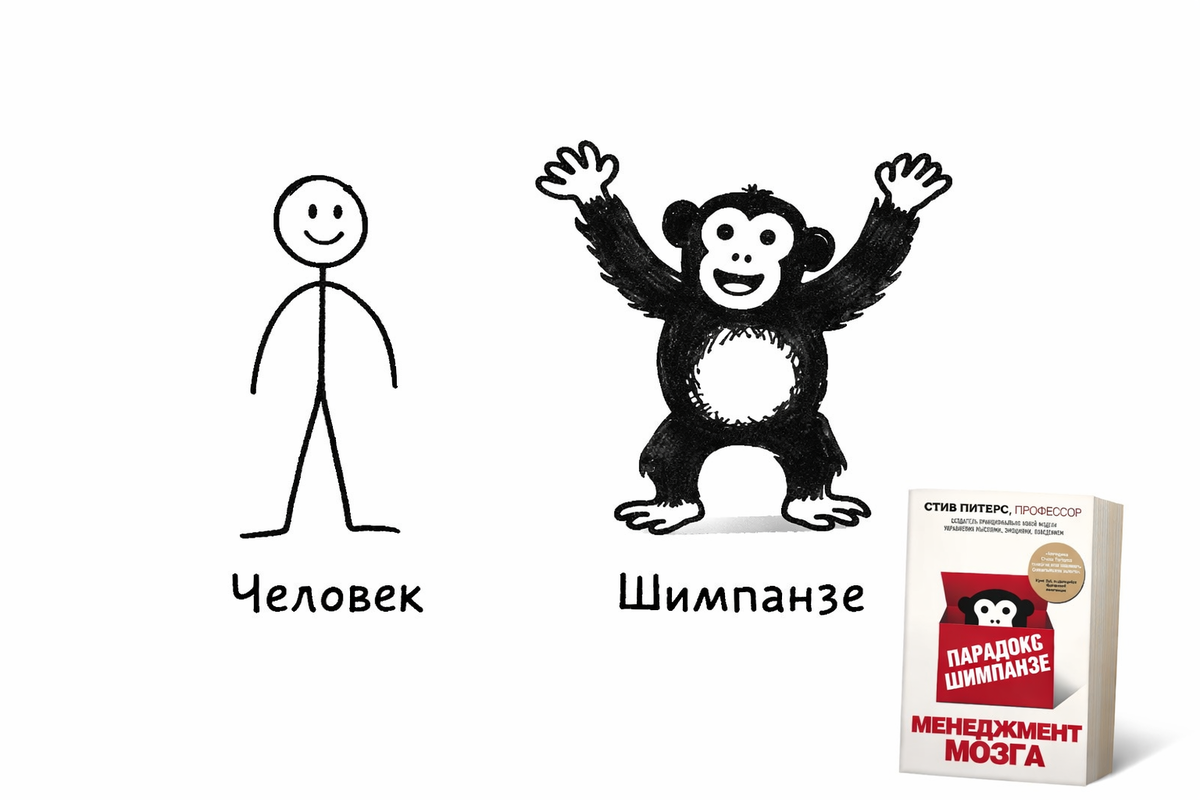 Стив Питерс в книге «Парадокс Шимпанзе» просто даёт этой внутренней буре образ. Шимпанзе.