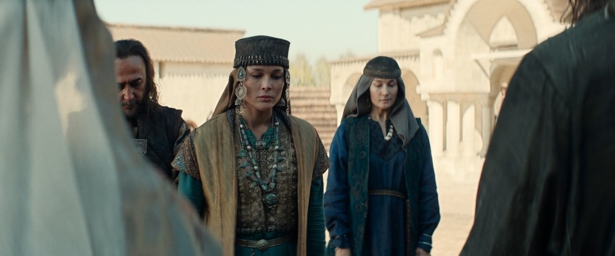 Продолжение 6-ой серии. В Боголюбово булгары привезли «мзду» - пять мер серебра (а сколько это в ногатах?) и княжну в залог мира, хотя Андрей именно такого залога и не просил. Вот он и говорит Улите насчет булгарского князя - «хитер, в залог мира на наш харч». Дело, как бы немножко не в этом, какой вообще смысл в такой заложнице? Если уж на то пошло, то в заложники посылали сыновей и братьев, то есть, тех представителей рода, что представляли ценность. И уж незамужних женщин, лет за 30 на вид, точно никто не присылал. Но видать, не придумали иного способа ввести в сюжет булгарыню. Зачем-то показывают крупным планом Амбала, глядящего на приехавшую княжну. Готовят зрителя к интриге, стало быть.