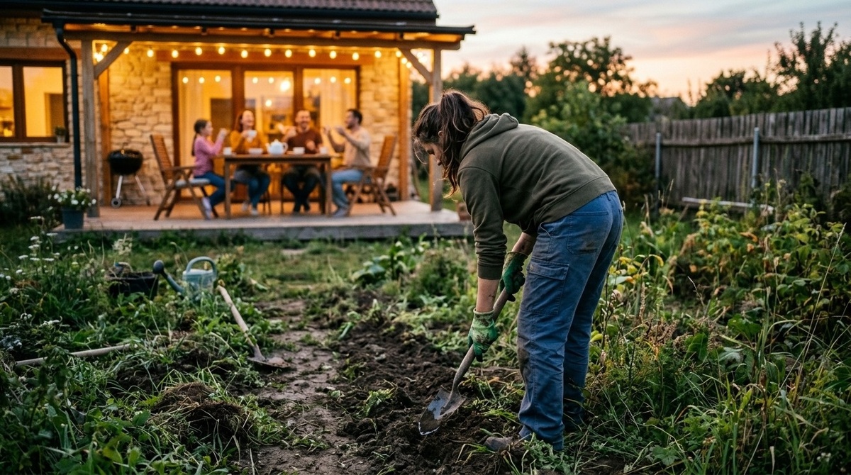 Я приехала в понедельник. Одна. Дом был запылённый, холодный. Участок — сплошной бурьян. Я начала копать. Спина гудела к вечеру, но я была почти счастлива: делаю полезное дело.