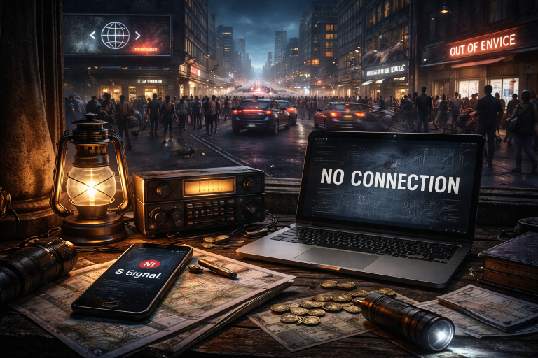 Когда говорят об интернете, его чаще всего представляют как удобство — быстрые сообщения, видео, покупки в один клик. Но в действительности он давно перестал быть «надстройкой» над жизнью. Он стал её невидимой основой, системой, через которую проходит почти всё: деньги, логистика, управление, связь. И потому вопрос о его исчезновении — это не фантазия про скуку без соцсетей, а попытка понять, насколько хрупок современный мир. Представим, что глобальная сеть исчезает мгновенно. Без постепенных сбоев, без деградации — просто перестаёт существовать как связанная система. В первые минуты это почти не выглядит катастрофой. Не отправляется сообщение в WhatsApp, не обновляется лента в Instagram, не открываются привычные сайты. Люди перезагружают устройства, проверяют соединение, списывают всё на локальный сбой. Но очень быстро становится понятно: проблема не в провайдере и не в стране — она глобальная. И в этот момент исчезает не просто доступ к информации, а ощущение контроля. Первые часы п