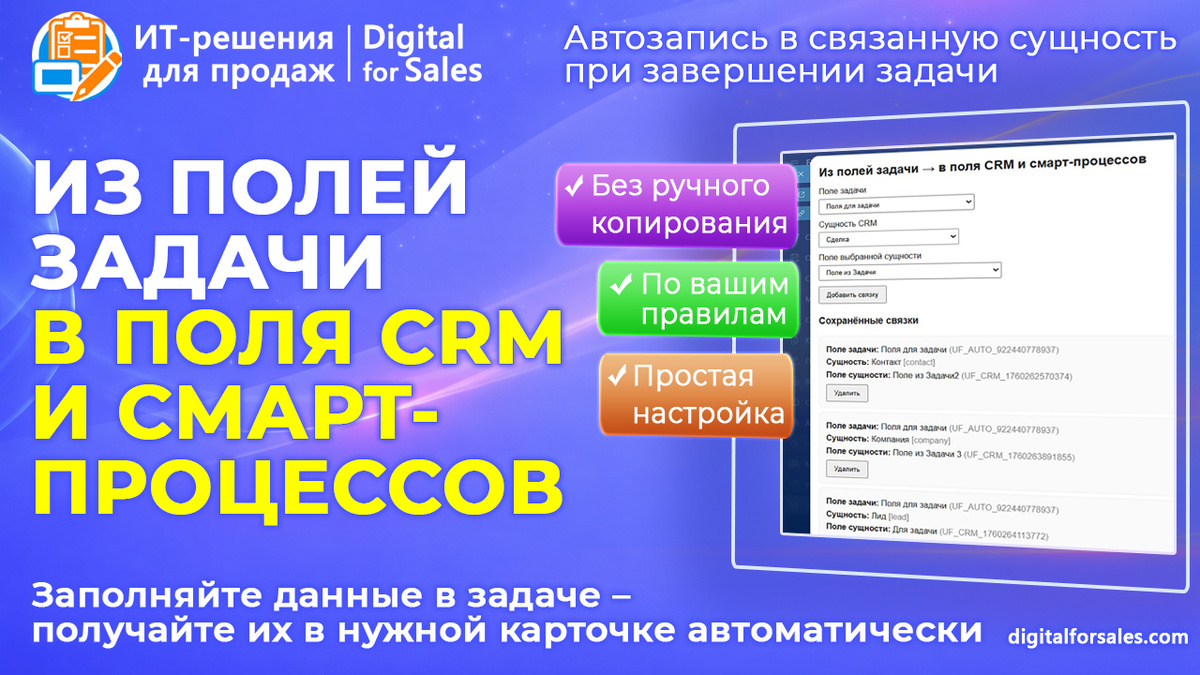 Как работает автоматическая передача данных из задачи в CRM или смарт-процесс?