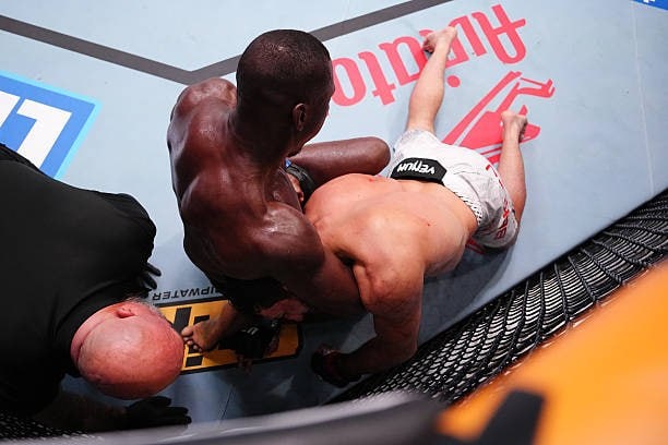 Бекоев терпит поражение удушающим приемом в третьем раунде.