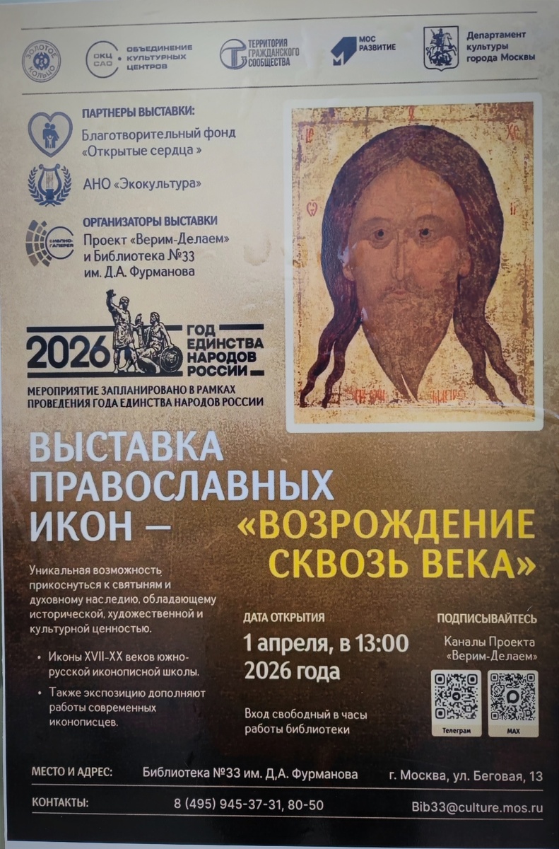 В библиотеке №33 им. Д.А. Фурманова прошла выставка православных икон «Возрождение сквозь века», приуроченная к году единства народов России. Здесь впервые собрались уникальные святыни из разных храмов, которые прежде никогда не были представлены вместе.