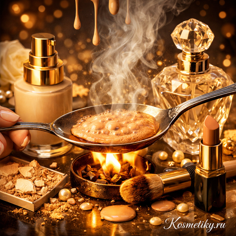 Девочки, я тут на днях листала ленту коротких роликов и чуть не поперхнулась своим утренним матча-латте. На экране юная дева с серьезным лицом… греет тональный крем в столовой ложке над зажигалкой. Нет, вы только представьте эту картину! Выглядит это, прямо скажем, как сцена из мрачного кино про девяностые где-нибудь в коммуналке на Петроградке, а не как бьюти-рутина современной женщины. Она, значит, греет эту несчастную жижу и радостно вещает: «Смотрите, тон стал абсолютно матовым!» Рука-лицо, честное слово. ♀️ Давайте включим голову и немного побудем химиками-технологами (я-то в этих баночках копаюсь уже столько лет, что могу по запаху отличить циклопентасилоксан от диметикона). Что происходит, когда вы устраиваете своему люксовому средству инквизицию на открытом огне? Девушка из видео свято верит, что совершила революцию в макияже. Но мы-то с вами взрослые, умудренные опытом женщины, и прекрасно знаем: от таких температур летучие силиконы просто испаряются в атмосферу, а сама форму