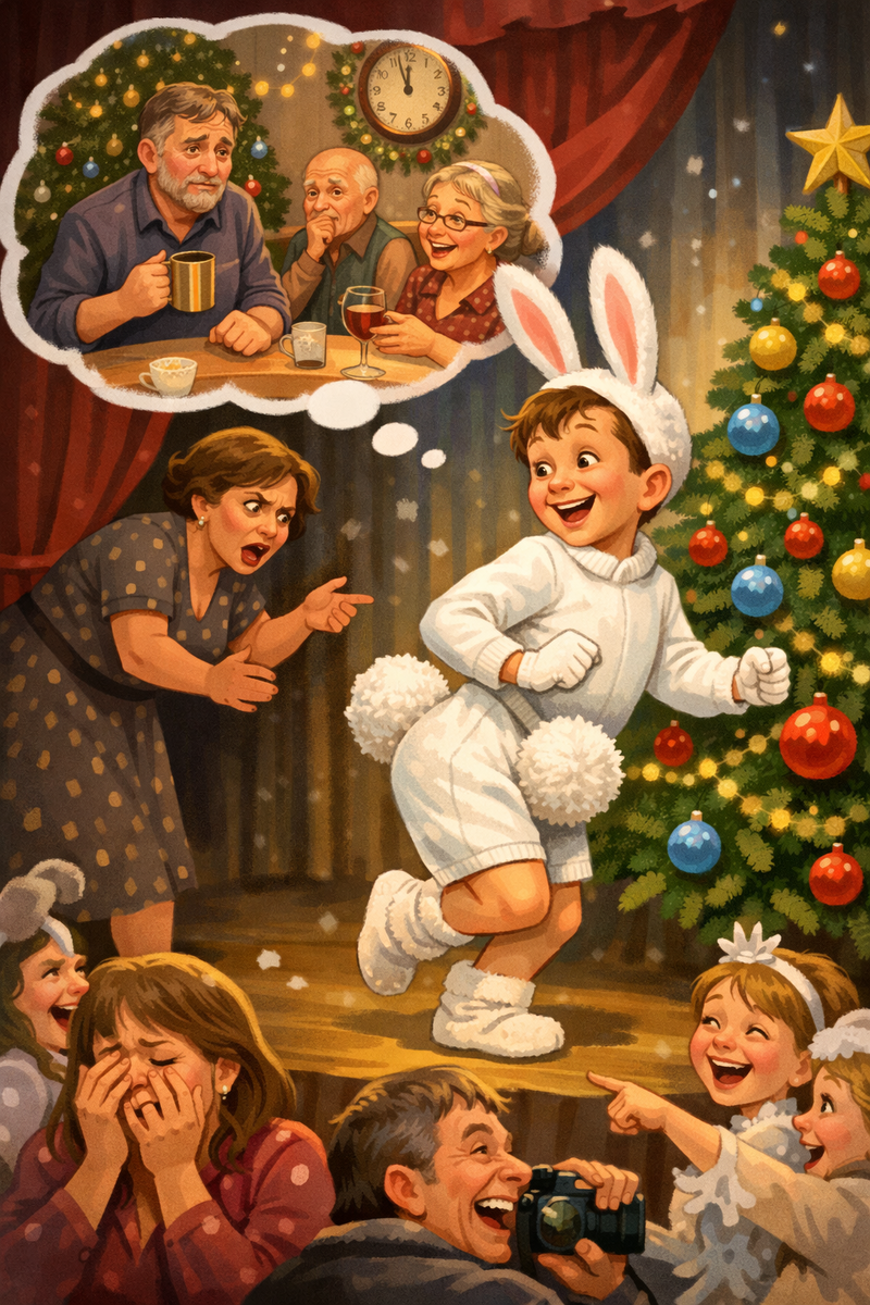 Задание было сформулировано чётко: после того, как Коля Петров начнёт читать стишок про зайку, Серёжа должен выпрыгнуть из-за кулис и попрыгать вокруг ёлочки. Один круг. Потом уйти. Без слов и пения. Без партнёров, которых можно уронить. Просто прыжки. «Уж это он испортить точно не сможет», – подумала Валентина Никифоровна.