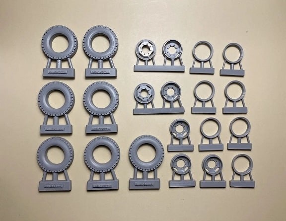 : два набора колес ARM35322N "КАМА" И-Н142БМ под нагрузкой, шоссейная версия и ARM35349N "КАМА" 0-40БМ под нагрузкой, шоссейная версия -адаптированных под модели ЗиЛ-130 фирм "Звезда" и "AVD". Ну и фигурки любимых персонажей в трёх масштабах : 1/43, 1/35, 1/32 под общим названием "Жить хорошо !" , у каждой из них обязательный атрибут (по одной штуке)...