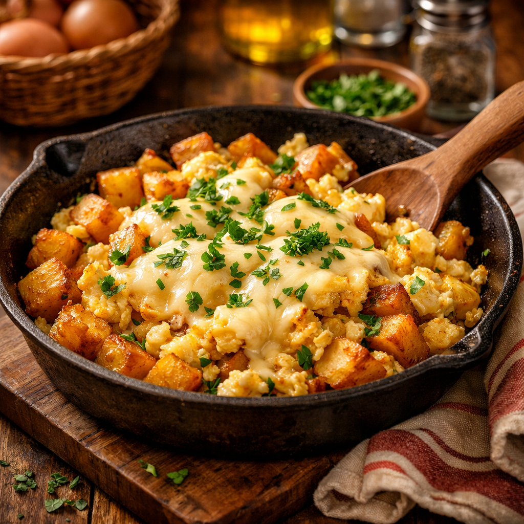 Сегодня я хочу поделиться очень простым и вкусным рецептом, который вы легко сможете приготовить из продуктов, которые наверняка уже есть на вашей кухне. Идеально подходит для тех дней, когда не хочется тратить много времени на готовку, но хочется вкусно поесть. Это блюдо не требует сложных ингредиентов и подойдет и новичкам, и тем, кто ценит комфорт и скорость на кухне. Ингредиенты: Приготовление: 1. Очистите картофель и нарежьте его тонкой соломкой или мелкими кубиками. 2. Лук мелко порежьте. 3. На сковороде разогрейте немного масла, обжарьте лук до прозрачности. 4. Добавьте картофель, посолите и поперчите по вкусу. Жарьте на среднем огне, помешивая, около 10 минут, пока картофель не станет мягким и немного золотистым. 5. Взбейте яйца и добавьте натёртый сыр. 6. Вылейте яично-сырную смесь на сковороду к картофелю, равномерно распределите и накройте крышкой. 7. Готовьте ещё 5 минут на медленном огне, пока яйца не схватятся. Вот и всё! Простое, вкусное и сытное блюдо готово. Отличный