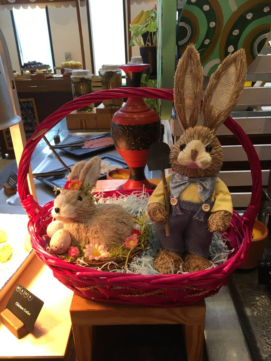 И в ресторане у нас вот такая красота. Подозрительно много огромных мухоморов но на мой взгляд так лучше чем если бы это были огромные яйца) Я спросила - команда ресторана готовила этот декор 15! Дней Счастливой Пасхи!