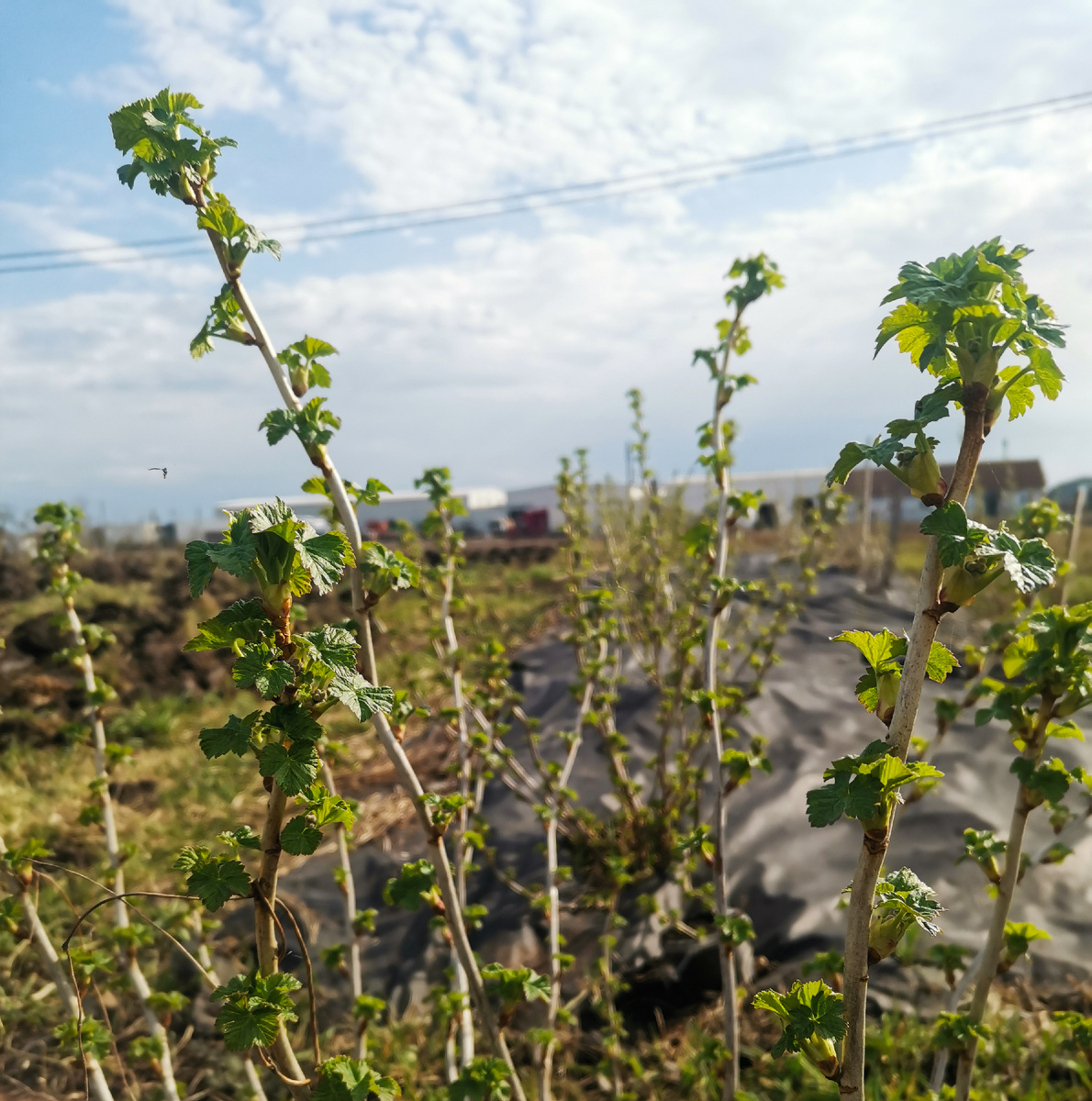 Первые листочки уже распустились на смородине.