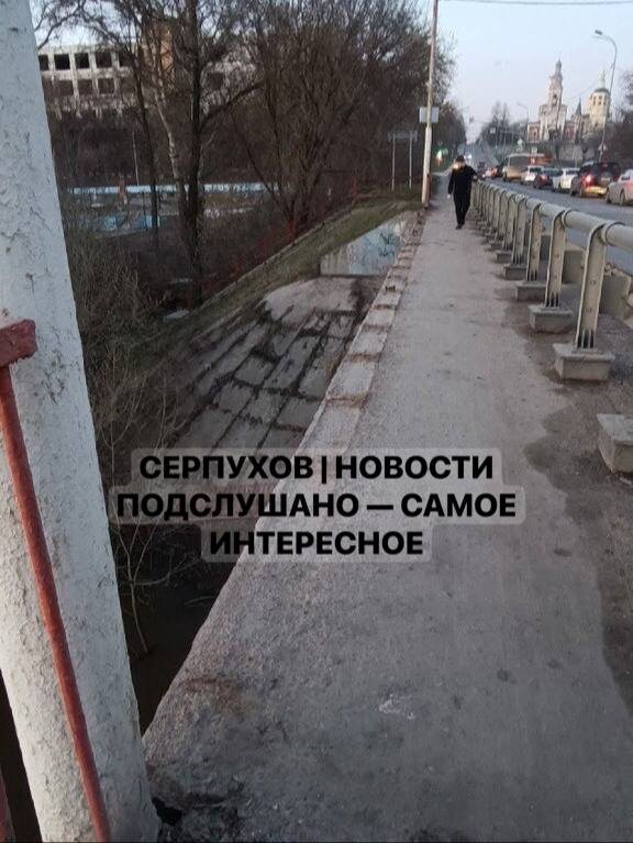 ! Кто додумался срезать перила на мосту с пешеходным трафиком и оставить как есть — получает награду «Гордость Серпухова». 🫥 Подписывайтесь на нас в МАХ