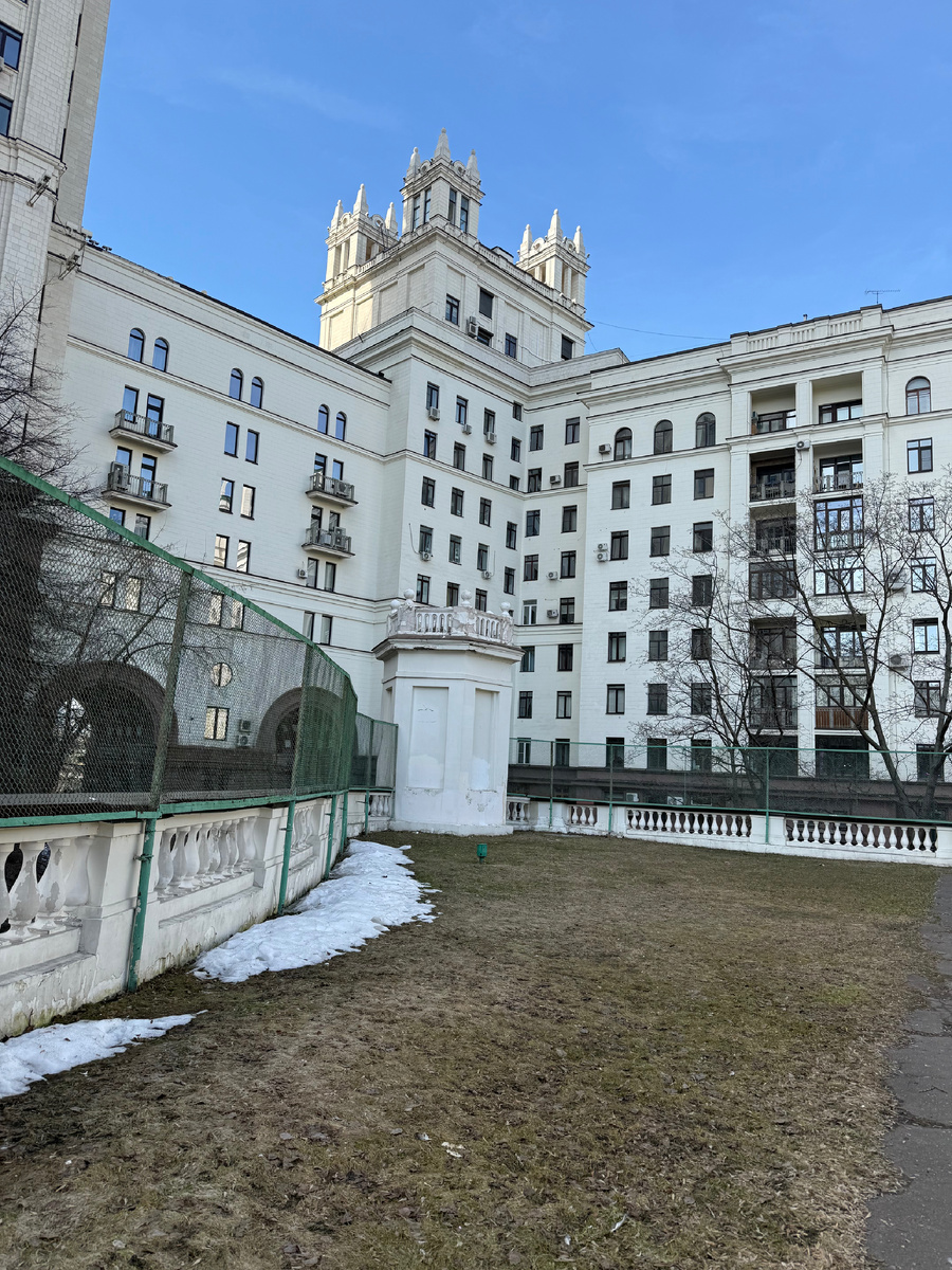 Я писала про посещение высотки в формате экскурсии, но тогда мы толком ничего и не посетили. Дошли до арки, посмотрели на окна квартиры, где жила Фаина Раневская, зашли в помещение почты и магазина, чтобы полюбоваться люстрами и потолками, а дальше наша экскурсия проходила в техническом помещении экскурсионного агентства. Оттуда открывались потрясающие виды на город, но дом целиком мы, к сожалению, не осмотрели.
