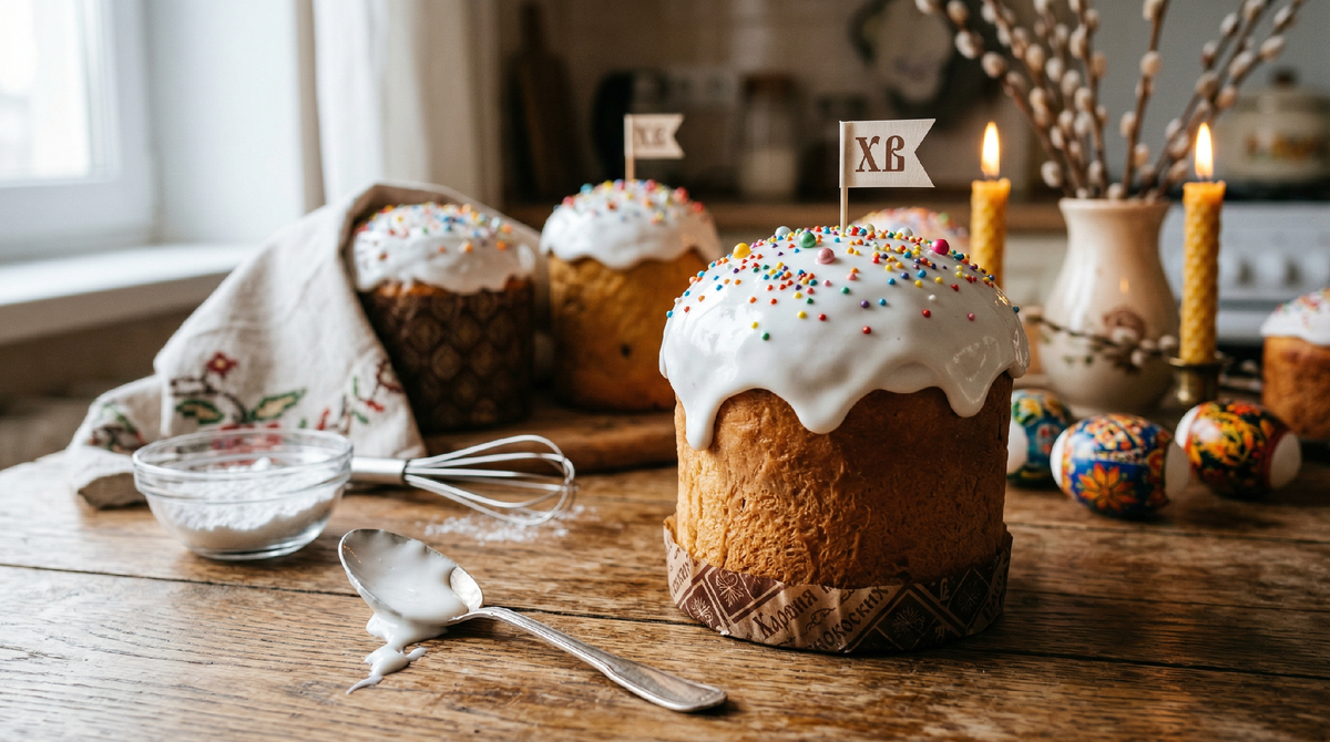 Запомните главное: на один средний яичный белок — около 150 граммов сахарной пудры, чайная ложка лимонного сока, терпеливое порционное взбивание и нанесение на полностью остывший кулич. Это простая формула, и если ей следовать, глазурь будет держаться так, как надо — ровно, красиво, без единой трещинки. Проверено не одним десятком куличей и не одной Пасхой.