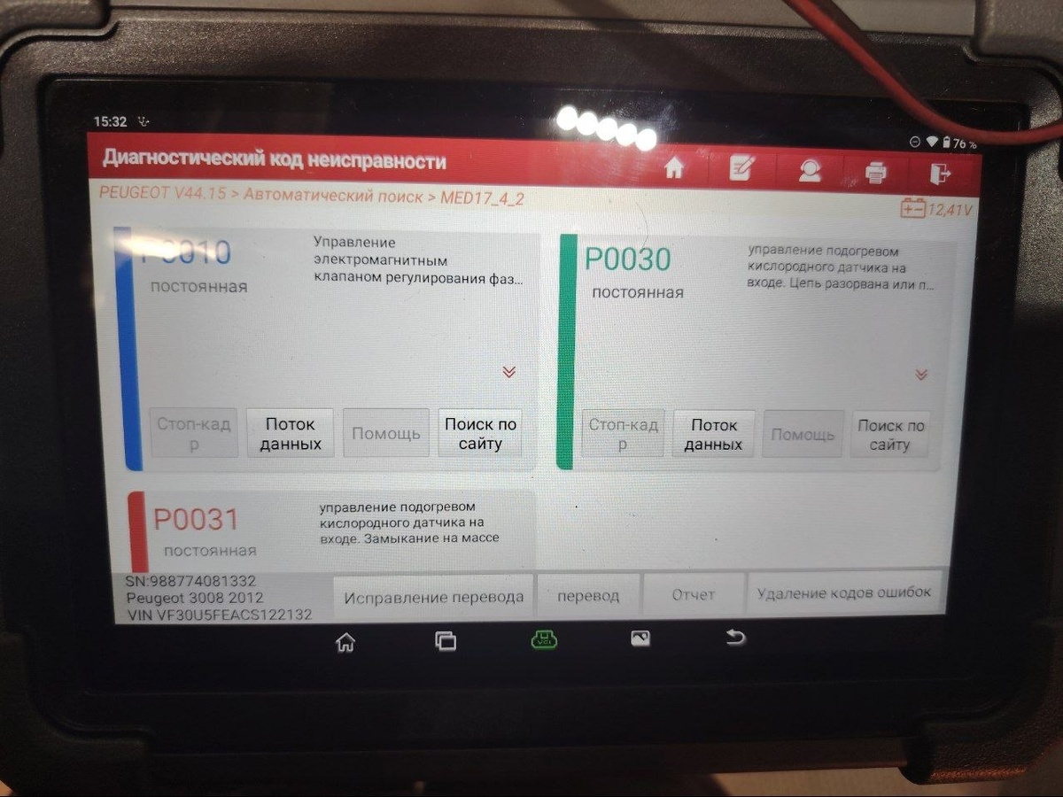 Пежо 3008. Не разгоняется автомобиль. Коробка автомат падает в аварию.Из-за ошибки по КЛАПАНУ фаз. Причина выход из строя предохранителя15А. На обогрев лямбда зонда и клапана фаз. Из-за перетирания и касания между собой линии обогрева датчика лямбда зонда! ⚡️