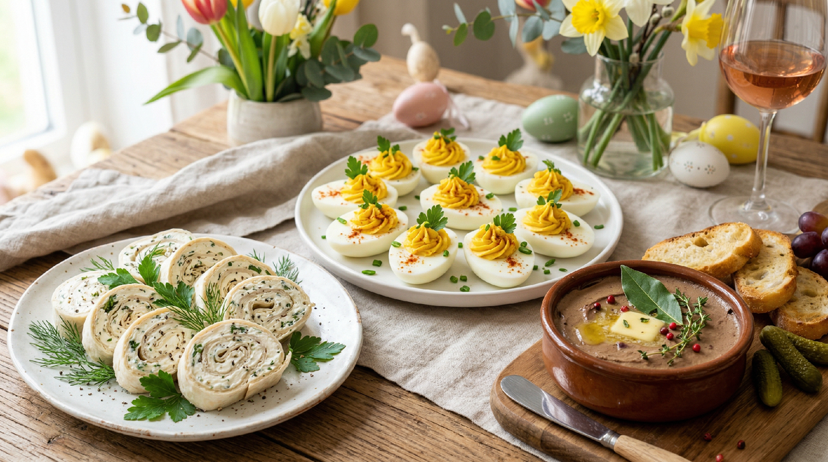 Речь пойдёт о трёх блюдах: рулет из лаваша с начинкой, фаршированные яйца и домашний паштет. Каждое из них готовится быстро, выглядит нарядно и обходится в копейки. А вместе они создают ощущение настоящего праздничного стола, где есть и разнообразие, и изобилие.