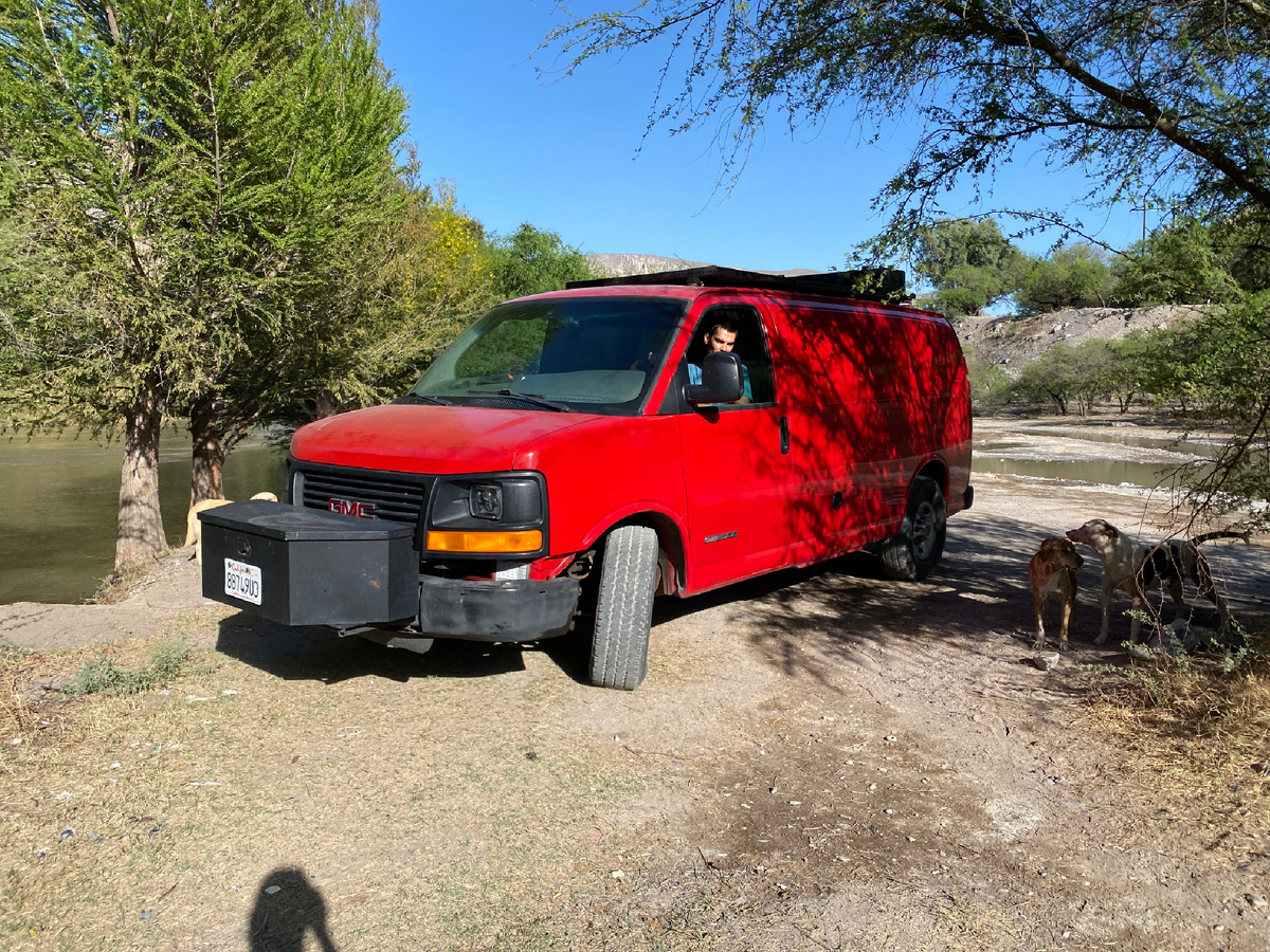 Доехали мы туда на нашем «Дракоше» — американском доме на колёсах GMC Savana 3500. Машина большая, прожорливая, но в таких путешествиях она становится настоящим домом. Потому что в подобных местах никакой инфраструктуры нет и в помине.