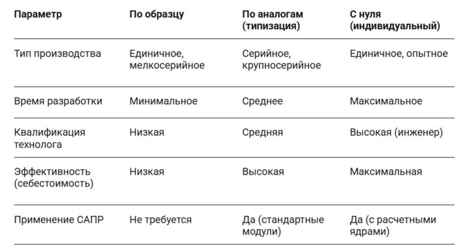 На сегодняшний день в промышленности существуют три основных способа разработки технологических процессов, каждый из которых имеет свои цели, преимущества и ограничения.