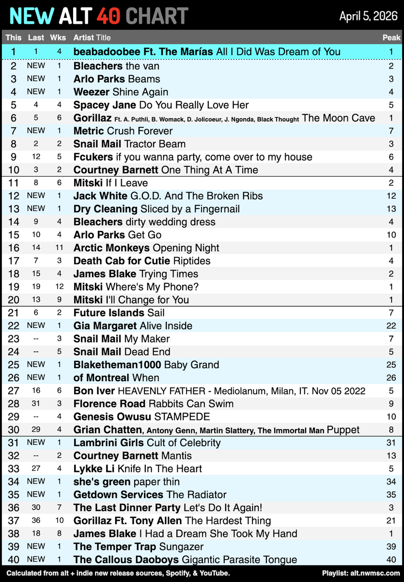 Представляем еженедельный интернет-чарт New Alt 40. Ниже подробности и видео новинок.