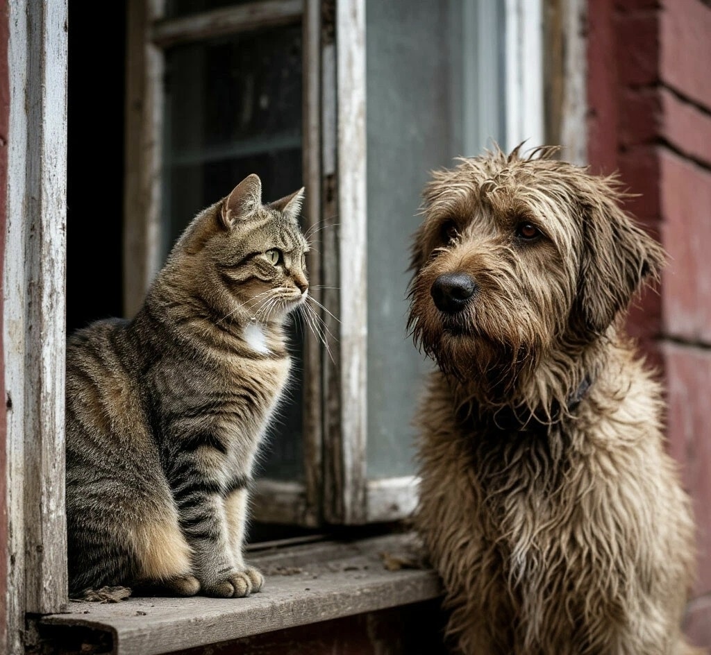 — Привет, кот! Весна ишь какая! Гулять охота! — пёс с наслаждением потянулся изгвазданными лапами.