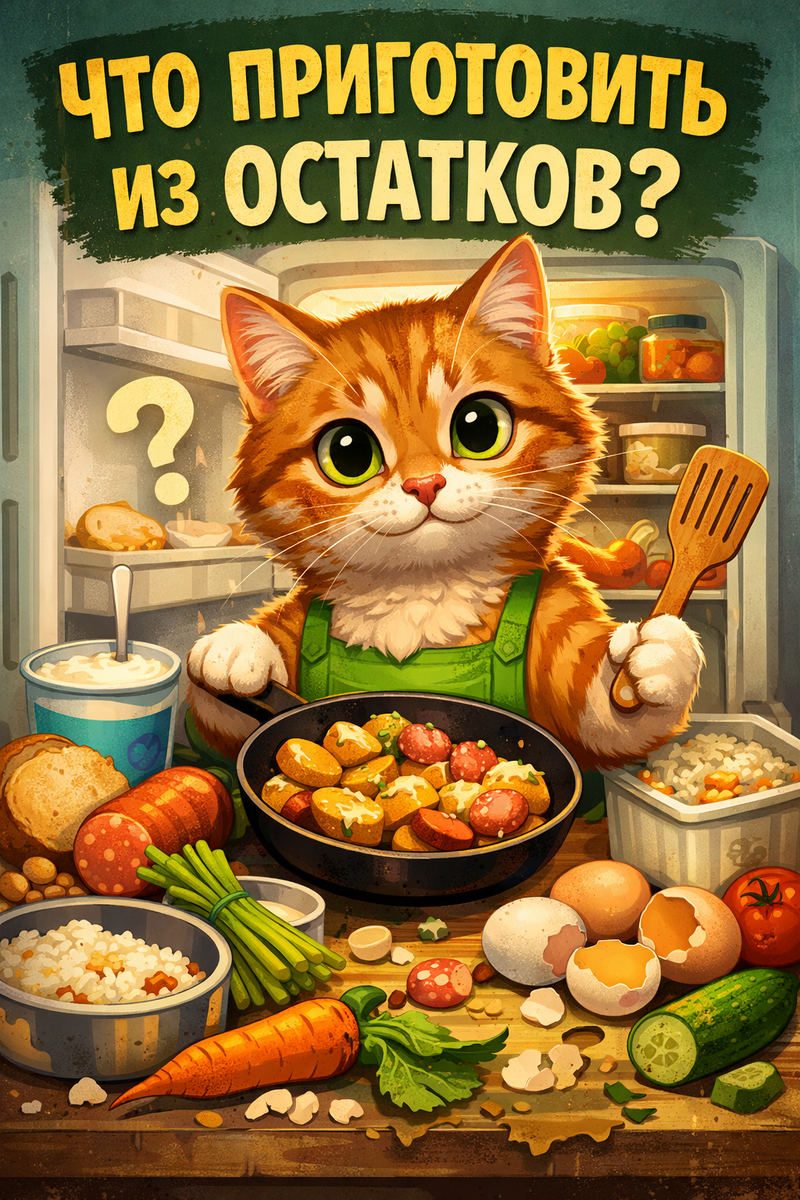 Открываешь холодильник — и вроде еды полно, а приготовить как будто нечего. Полбанки сметаны, три варёные картошки, кусок сыра, пара яиц, подвявший огурец, немного колбасы, остатки курицы, одинокая морковь, которую уже никто не хочет, и контейнер с рисом, который стоит там с позавчера. Знакомо? В такие моменты многие делают две плохие вещи: либо заказывают доставку, либо героически выбрасывают еду со словами «ну уже всё, это никто есть не будет».
