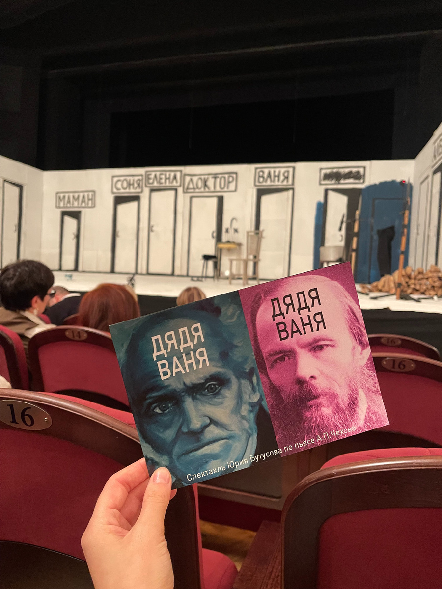 Художественный язык Юрия Бутусова — это нечто особенное. Вот чем может удивить «Дядя Ваня» Чехова? Если, конечно, это не моноспектакль. Оказалось — очень даже многим. Обычно мы скептически настроены, когда возраст артиста сильно не совпадает с возрастом героя. Это ж вам не опера. Далеко ходить не надо: на соседней улице от Театра им. Ленсовета в МДТ уже двадцать лет дают «Дядю Ваню» с Сергеем Курышевым в главной роли. Сергею Владимировичу уже 62. Уверен, что его Войницкий в начале двухтысячных был «то, что надо». Но сейчас я просто не верю его переживаниям. Так вот, когда мы увидели в программке, что Астрова играет семидесятилетний Евгений Филатов, а не Сергей Перегудов, то чуть-чуть подрастроились. Тася ещё удивилась, что Соней будет Ольга Муравицкая — возраст же опять совсем не подходит. И Евгений Александрович, и Ольга наши преждевременные огорчения размазали, словно краску по белой стене. Внутренней энергии Филатова позавидует любой тридцатилетний; Астрову в его исполнении не то чт