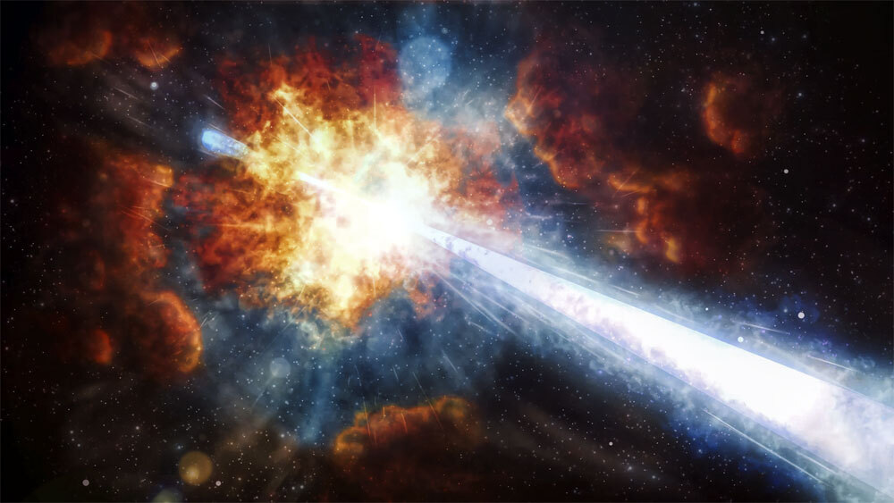Ученые полагают, что впервые наблюдали «грязный взрыв» умирающей звезды. Предсказанное больше 30 лет назад явление зафиксировал космический телескоп «Эйнштейн». Когда у массивной звезды заканчивается топливо, ее коллапс и последующий взрыв могут протекать по-разному. Если в результате образуется черная дыра, она может породить поток излучения колоссальной силы — гамма-всплеск. Подобные всплески — одни из самых мощных взрывов во Вселенной. За одно мгновение они могут выделить столько же энергии, сколько небольшая звезда вроде Солнца производит за всю свою жизнь. Однако астрономы до сих пор не знают, как именно происходит этот процесс и как свойства звезды влияют на испускаемый ею джет. Физики выдвинули гипотезу: если струя по какой-то причине окажется загрязненной материей звезды — протонами и нейтронами, — картина должна быть иной. Эти частицы сработают как губка — замедлят излучение, переведя его из гамма-диапазона в регтгеновский. Однако до сих пор такой сценарий «грязного взрыва» не
