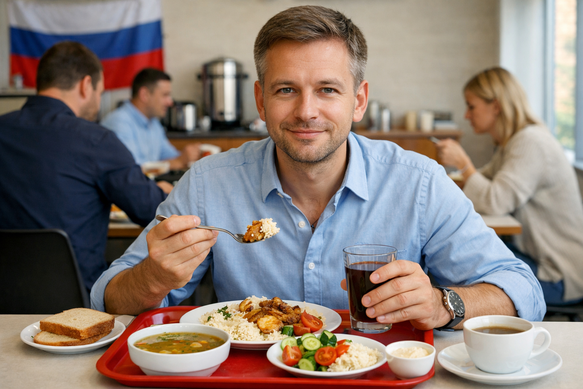У окна было свободно. Тот же столик, тот же вид на улицу, по стеклу ползли водяные дорожки, касса пищала через равные промежутки, пахло томатным супом и тёплым хлебом. Дмитрий поставил на стол серый контейнер. Уже не пряча его в пакет. Просто поставил.
