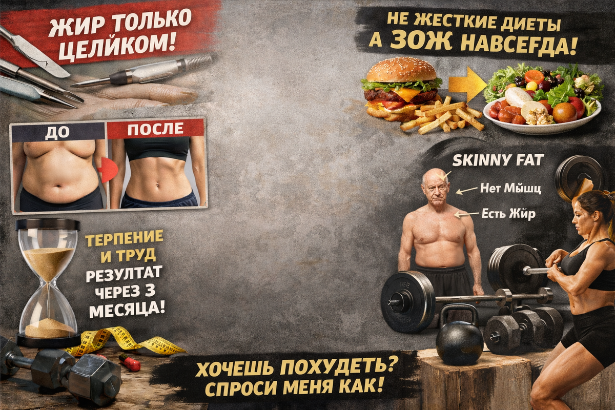 Люди после 30 лет, худеющие только с помощью сокращения калорийности рискуют стать skinny fat (жирный дрищ) т.к. с потерей жира идёт и потеря мышц. Идеальный вариант в процессе похудения начать наращивать мышцы силовыми нагрузками, которые, кстати, будут вам помогать сжигать жирок. Можно нарастить чуть больше килограмма мышц и на целых 5-7% увеличить количество энергии, которую тело тратит в состоянии покоя🧘🏻♂️