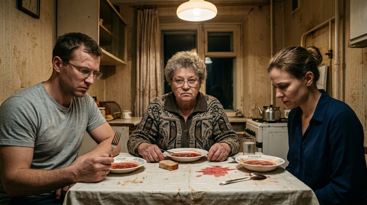 Ложка выскользнула у Марины из пальцев. Упала в тарелку с глухим стуком, забрызгав скатерть борщом. Красное пятно поползло по белому льну, переползая через невидимую границу на середине стола. Она смотрела на это пятно и не могла оторвать взгляд. Как будто в нём была вся суть.