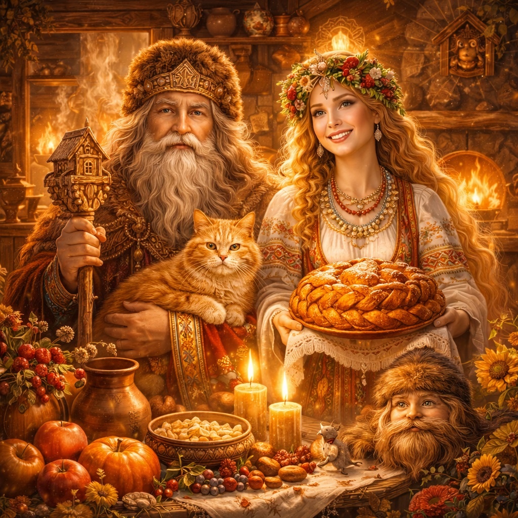 Именно поэтому дом никогда не считался просто “жилым помещением”. Он был маленьким миром, который нужно было удерживать. А удерживать его одними руками было невозможно. Нужны были силы, стоящие у печи, у порога, в красном углу, у двора, у амбара, у курятника, у хлева и у самой нити домашней жизни. В славянском представлении дом был живым, а значит, он неизбежно требовал своих хозяев — видимых и невидимых.